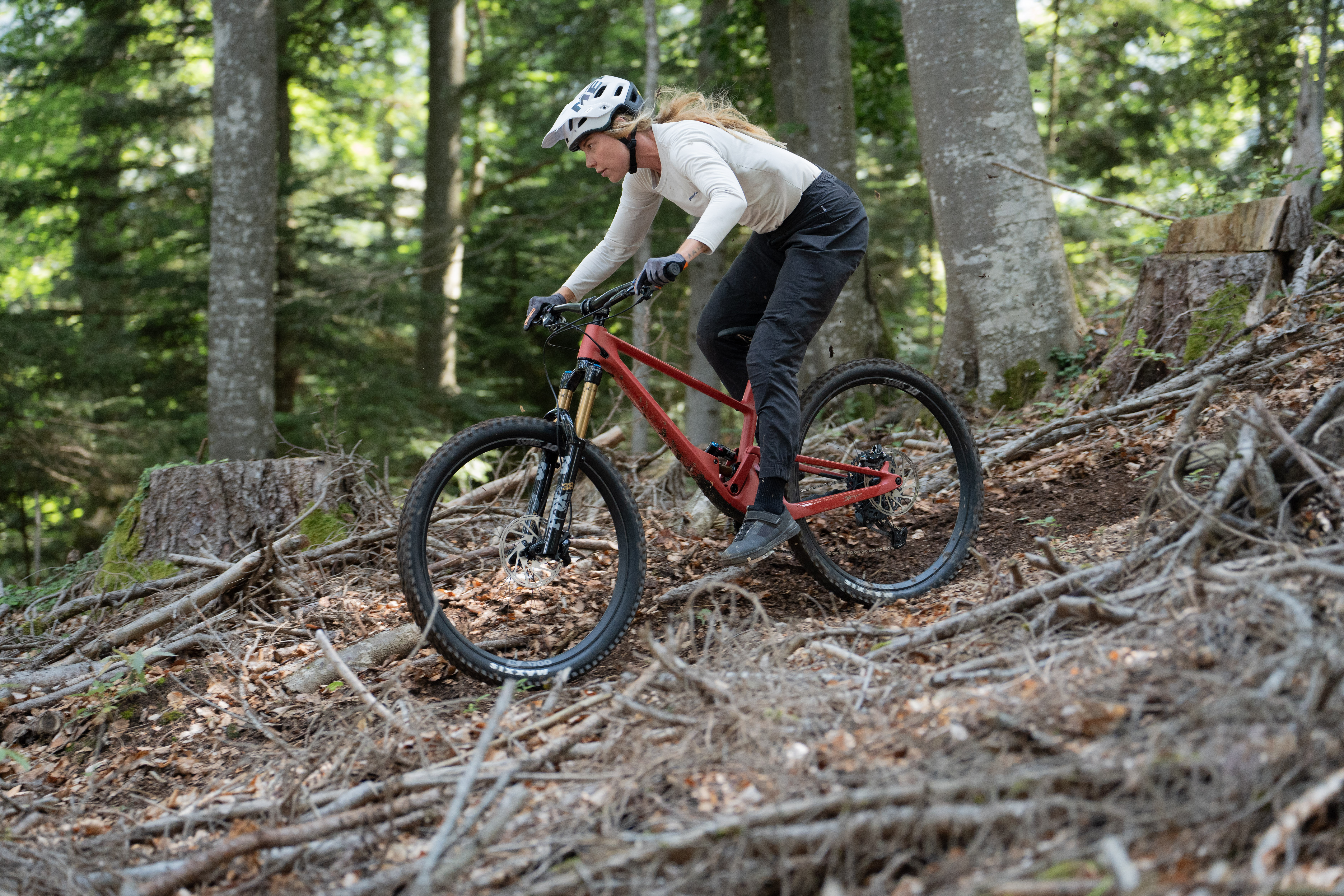 Die Federung wurde so abgestimmt, dass sie kleinere Unebenheiten sensibel aufnimmt, aber auch bei härteren Schlägen nicht an Kontrolle verliert. Damit meisterst du Wurzelteppiche und felsige Abschnitte mit maximaler Sicherheit und gleichzeitig vollem Fahrspaß. SCOR setzt zudem auf eine tiefe Rahmenlinie, die viel Bewegungsfreiheit bietet – ideal für schnelle Richtungswechsel oder stylische Sprünge über Hindernisse.